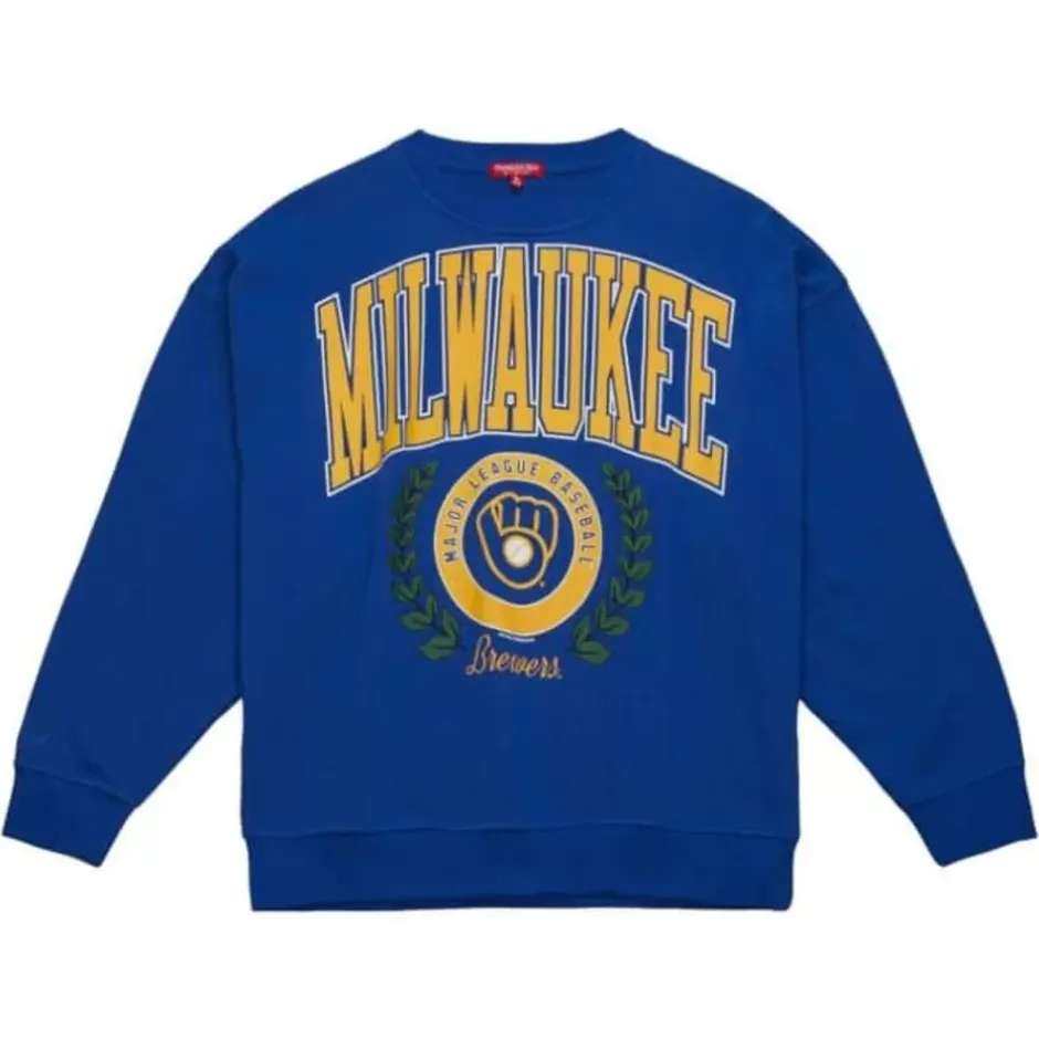 Woman Mitchell & Ness Hoodies & Sweatshirts-Womens Logo Lt Crew 2.0 Milwaukee Brewers
