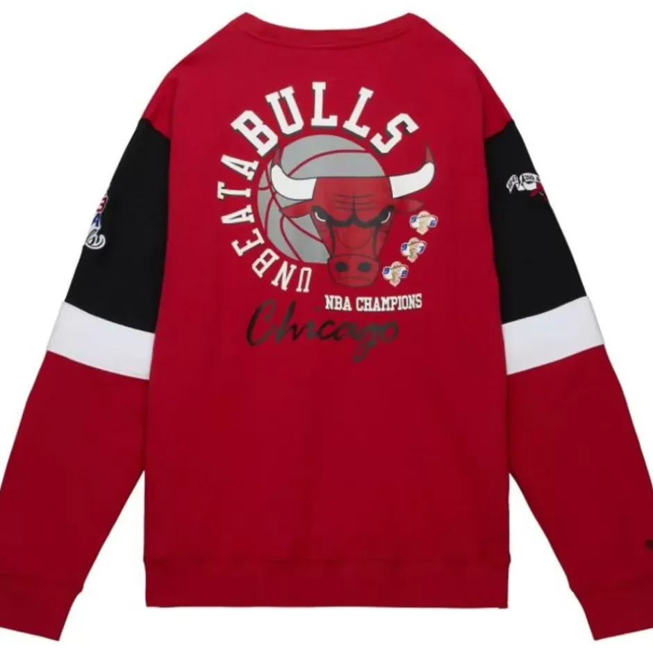 Men Mitchell & Ness Hoodies & Sweatshirts-All Over Crew 3.0 Chicago Bulls