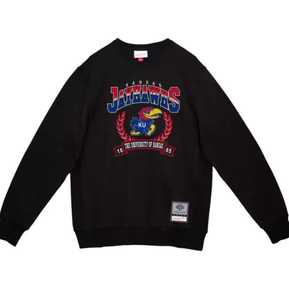 Men Mitchell & Ness Hoodies & Sweatshirts-Baseline Crew University Of Kansas