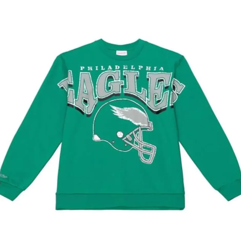 Men Mitchell & Ness Hoodies & Sweatshirts-Fashion Fleece Crew Philadelphia Eagles