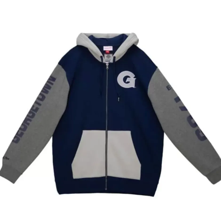 Men Mitchell & Ness Hoodies & Sweatshirts-Full Zip Fleece Georgetown University