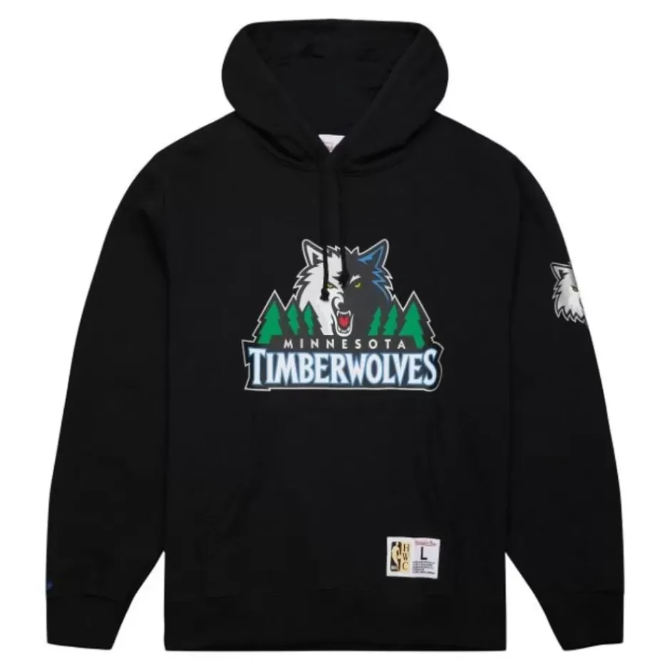Men Mitchell & Ness Hoodies & Sweatshirts-Game Time Fleece Hoodie Vintage Logo Minnesota Timberwolves