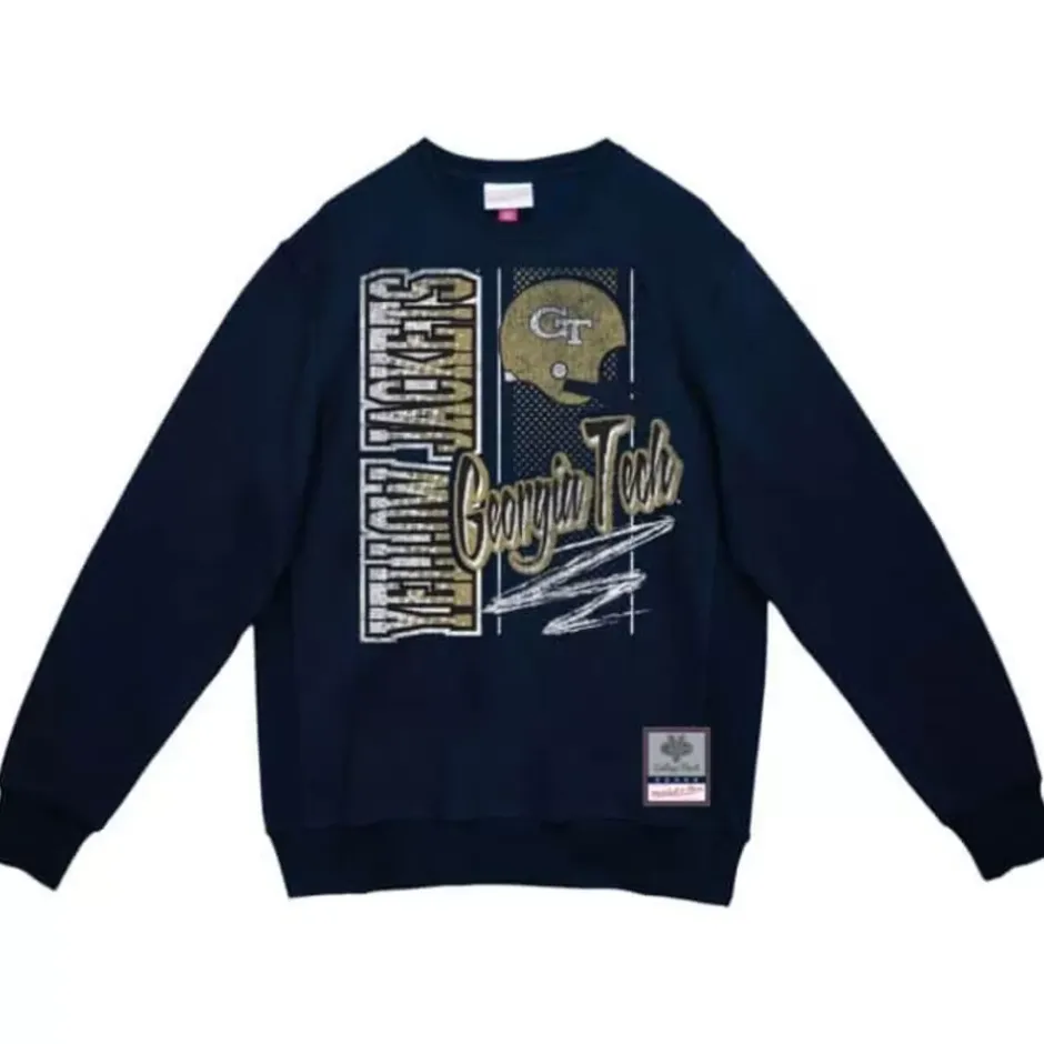 Men Mitchell & Ness Hoodies & Sweatshirts-Halftime Script Crew Georgia Tech