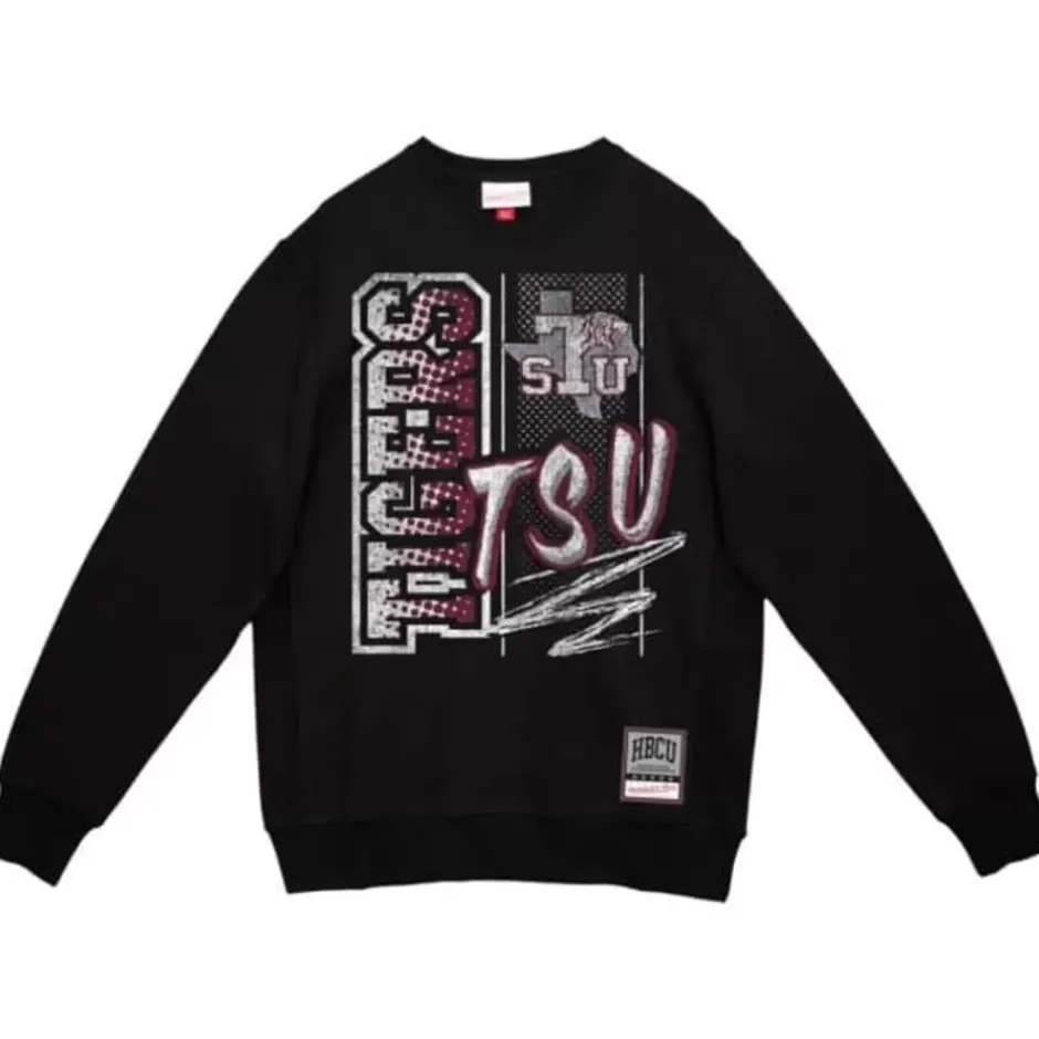 Men Mitchell & Ness Hoodies & Sweatshirts-Halftime Script Crew Texas Southern University