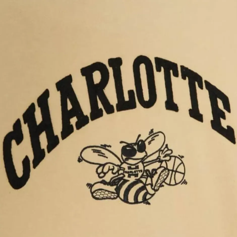 Men Mitchell & Ness Hoodies & Sweatshirts-Khaki Black Hoodie Charlotte Hornets