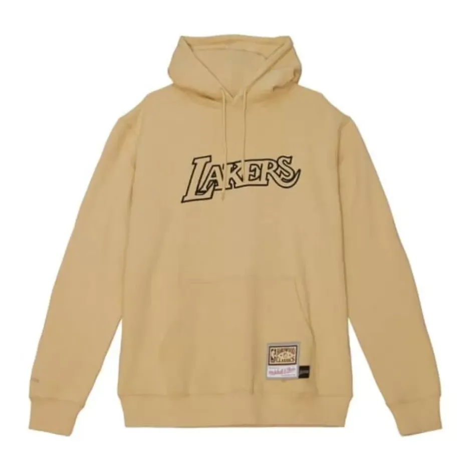 Men Mitchell & Ness Hoodies & Sweatshirts-Khaki Black Hoodie Los Angeles Lakers