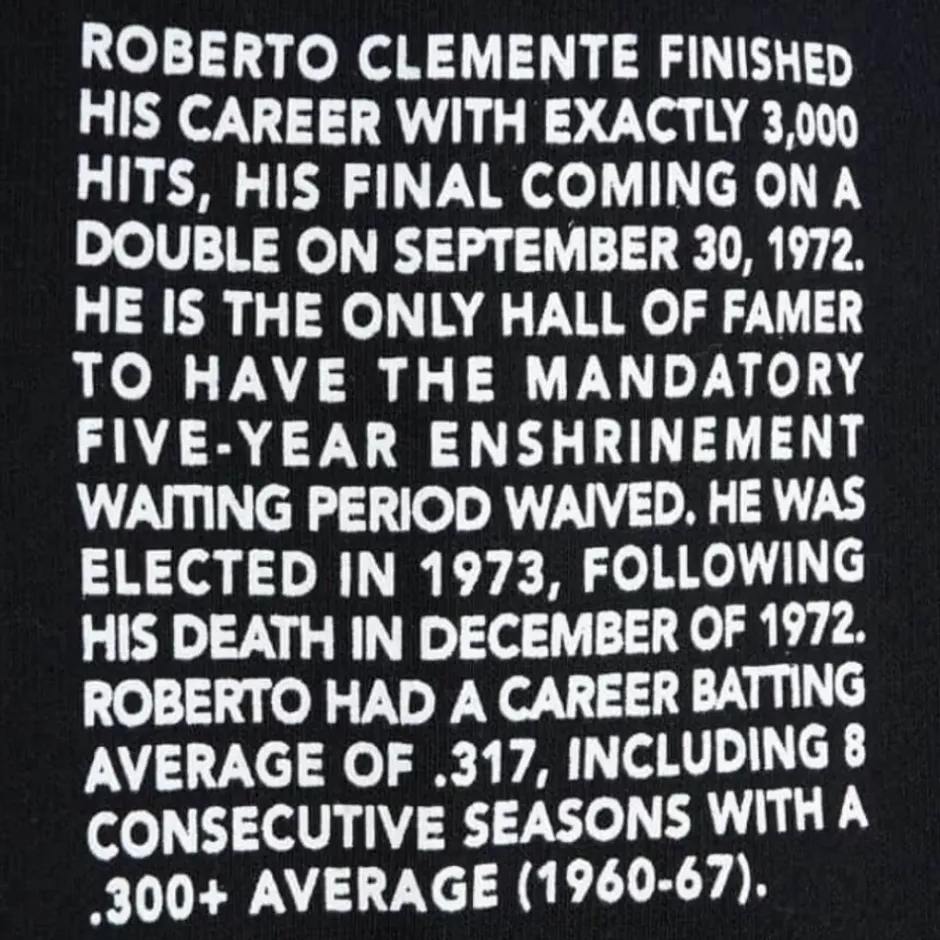 Mitchell & Ness Is Proud To Welcome Back The Late, Great Roberto Clemente Into Our Cooperstown Collection Just In Time To Celebrate The 50Th Anniversary Of His Induction Into Cooperstown. The Roberto Clemente Legends Collection Includes An Honorary Authentic 1971 Jersey, Pirates Satin Jacket, Hoodie, Cream T-Shirt And Apparel. Clemente Was The First Latin American To Ever Be Inducted, Just Months After His Tragic Passing. The Mlb Waived Their Five-Season Minimum Since Retirement Rule To Honor The Late Legend. Roberto Clemente Played His Entire 18-Year Career With The Pittsburgh Pirates And Chose The No. 21 For Each Of The Letters In His Full Name, Roberto Clemente Walker.Finishing His Career With A .317 Average, 3,000 Hits, 4 Nl Batting Titles, 15X All-Star Selections, 2 World Series Titles (1960 And 1971), Clemente Also Had A Legendary Arm, Winning 12 Gold Glove Awards.Also Known For His Passion For Humanitarianism And Charity Work, Roberto Clemente Sadly Passed Away While On His Way To Deliver Aid To Victims Of An Earthquake In Nicaragua. For His Sacrifice, The Mlb Renamed The Commissioner’S Award As The “Roberto Clemente Award,” Given To The Player Who Best Follows His Example Each Year. “Any Time You Have An Opportunity To Make A Difference In This World And You Don’T, Then You Are Wasting Your Time On Earth.” Clemente Said.Shop The Roberto Clemente Legends Collection To Honor The 50Th Anniversary Of His Cooperstown Induction!