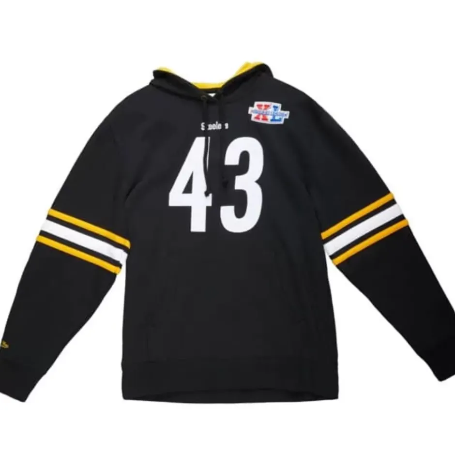 Men Mitchell & Ness Hoodies & Sweatshirts-Name And Number Fleece Hoodie Pittsburgh Steelers 2006 Troy Polamalu