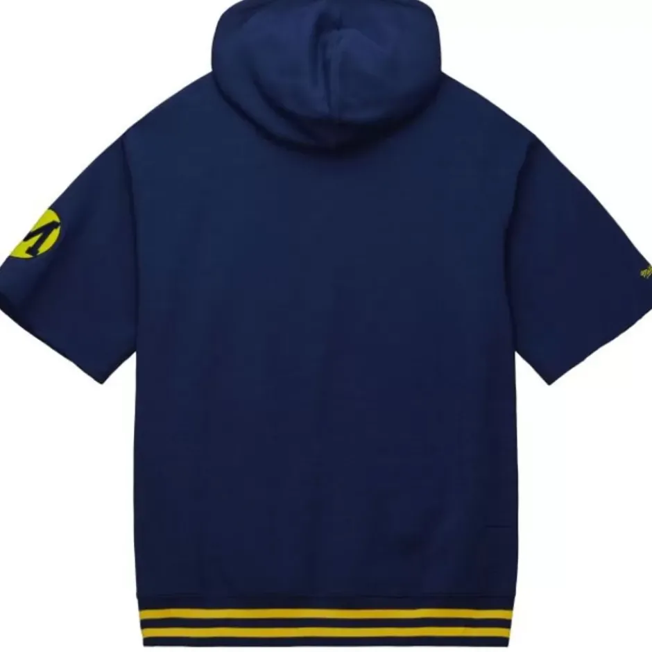 Men Mitchell & Ness Hoodies & Sweatshirts-Pre-Game Ss Fleece Hoodie University Of Michigan