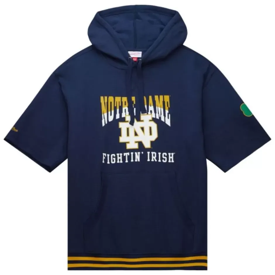Men Mitchell & Ness Hoodies & Sweatshirts-Pre-Game Ss Fleece Hoodie University Of Notre Dame
