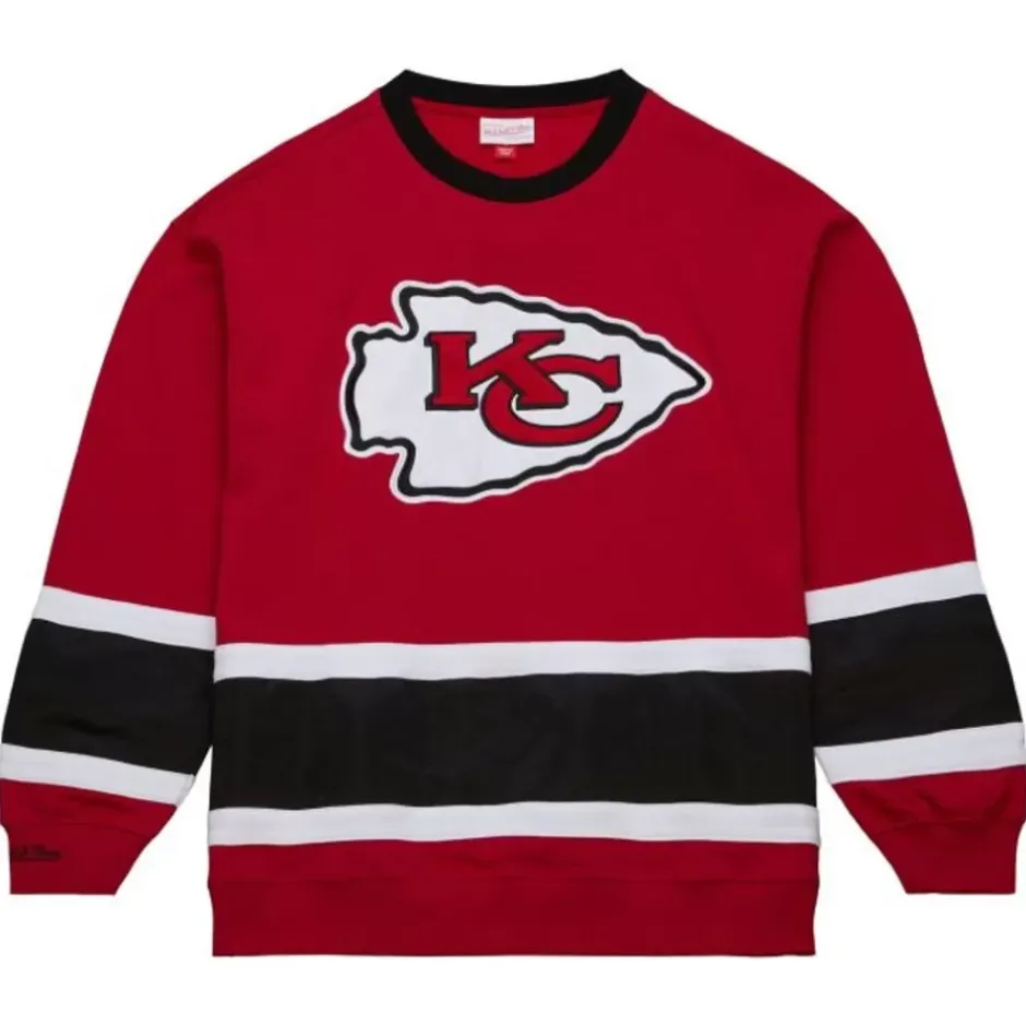 Men Mitchell & Ness Hoodies & Sweatshirts-Satin Insert Fleece Crew Kansas City Chiefs
