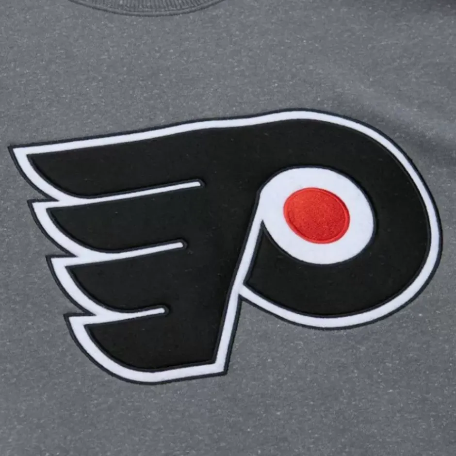 Men Mitchell & Ness Hoodies & Sweatshirts-Snow Washed Fleece Crew Current Logo Philadelphia Flyers