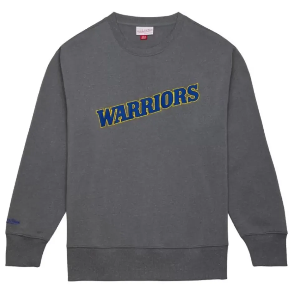 Men Mitchell & Ness Hoodies & Sweatshirts-Snow Washed Fleece Crew Golden State Warriors