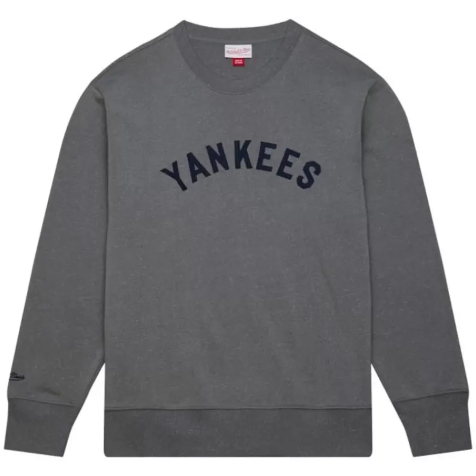 Men Mitchell & Ness Hoodies & Sweatshirts-Snow Washed Fleece Crew New York Yankees