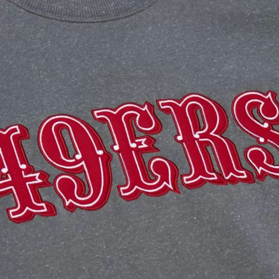 Men Mitchell & Ness Hoodies & Sweatshirts-Snow Washed Fleece Crew San Francisco 49Ers