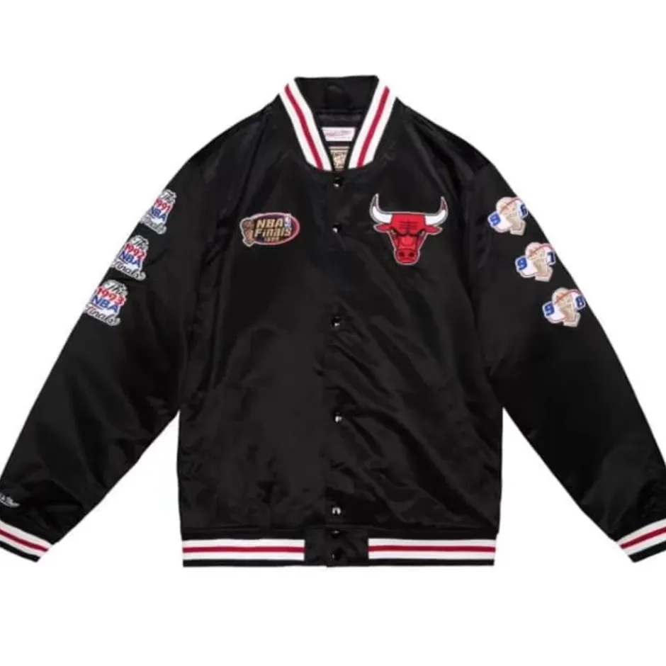 Men Mitchell & Ness Jackets & Outerwear-Champ City Satin Jacket Chicago Bulls