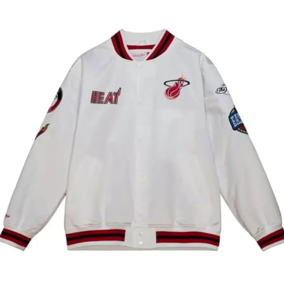 Men Mitchell & Ness Jackets & Outerwear-City Collection Lightweight Satin Jacket Miami Heat