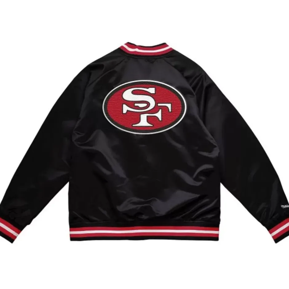 Men Mitchell & Ness Jackets & Outerwear-Double Clutch Lightweight Satin Jacket San Francisco 49Ers