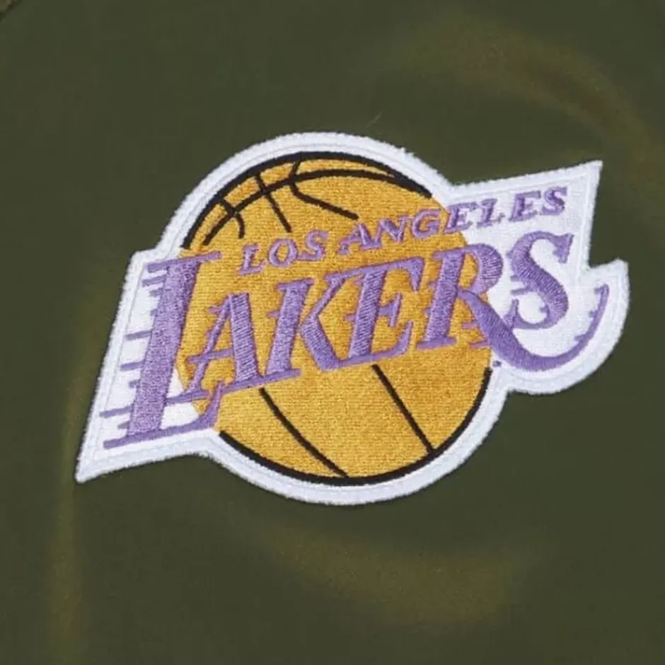 Men Mitchell & Ness Jackets & Outerwear-Flight Satin Bomber Jacket Los Angeles Lakers