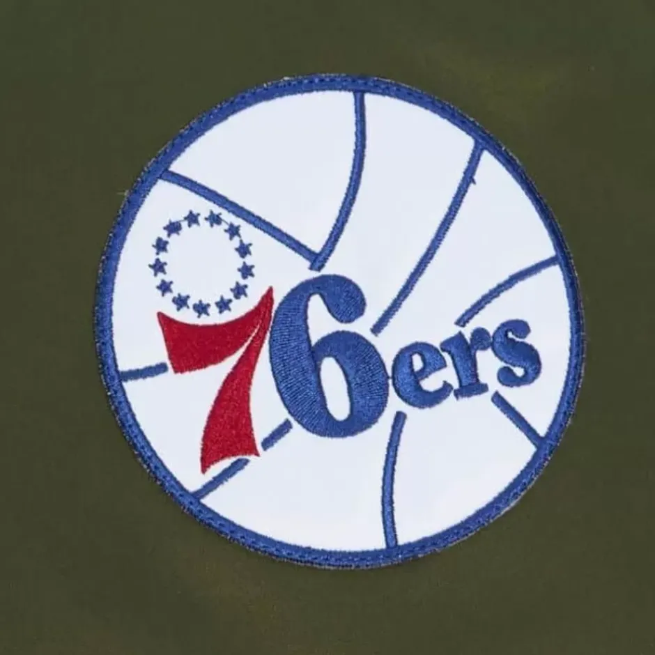 Men Mitchell & Ness Jackets & Outerwear-Flight Satin Bomber Jacket Philadelphia 76Ers