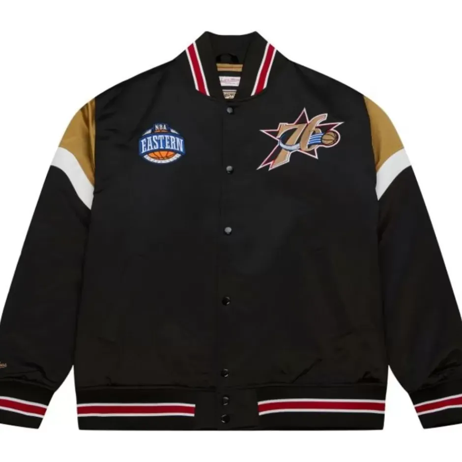 Men Mitchell & Ness Jackets & Outerwear-Heavyweight Satin Jacket Philadelphia 76Ers