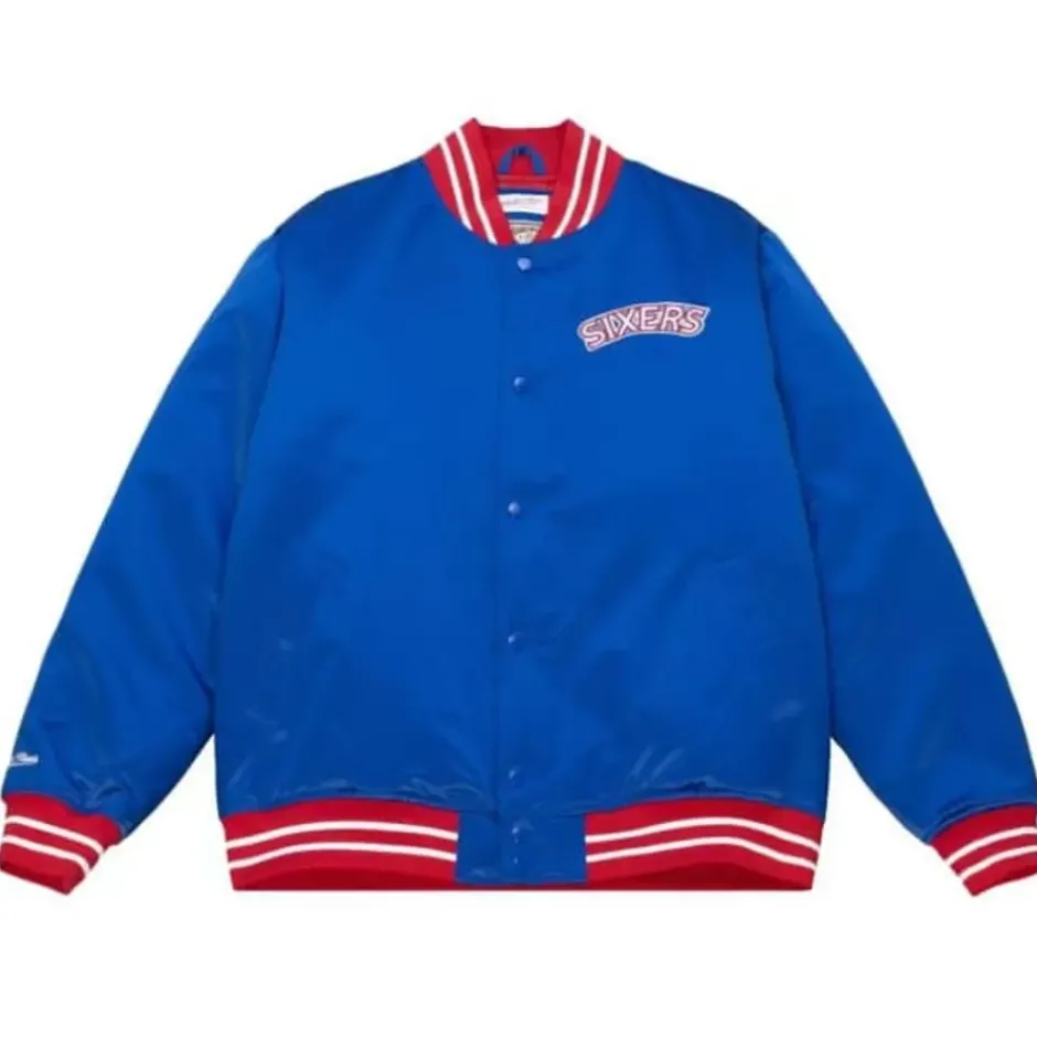 Men Mitchell & Ness Jackets & Outerwear-Heavyweight Satin Jacket Philadelphia 76Ers