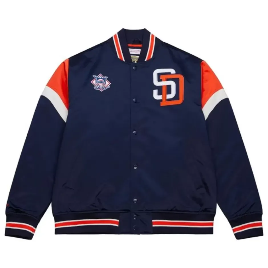 Men Mitchell & Ness Jackets & Outerwear-Heavyweight Satin Jacket San Diego Padres