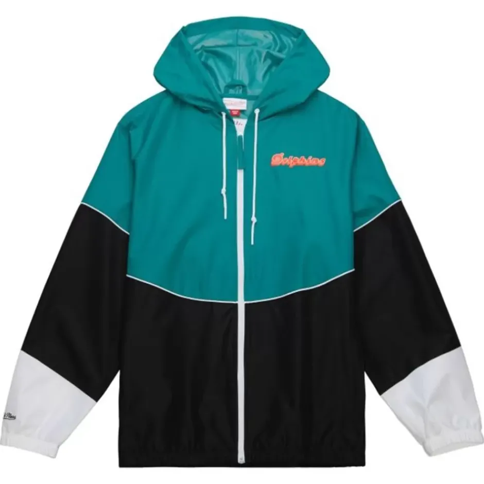 Men Mitchell & Ness Jackets & Outerwear-Home Team Lightweight Windbreaker Miami Dolphins