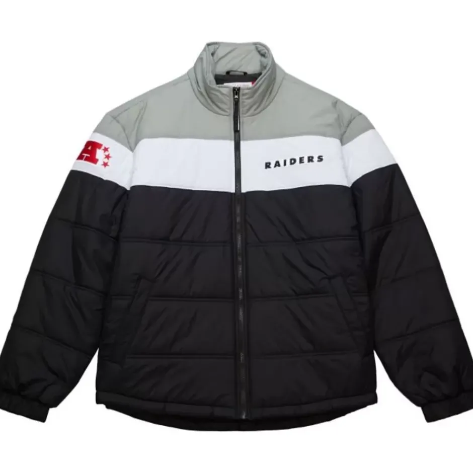 Men Mitchell & Ness Jackets & Outerwear-In The Clutch Puffer Jacket Vintage Logo Oakland Raiders