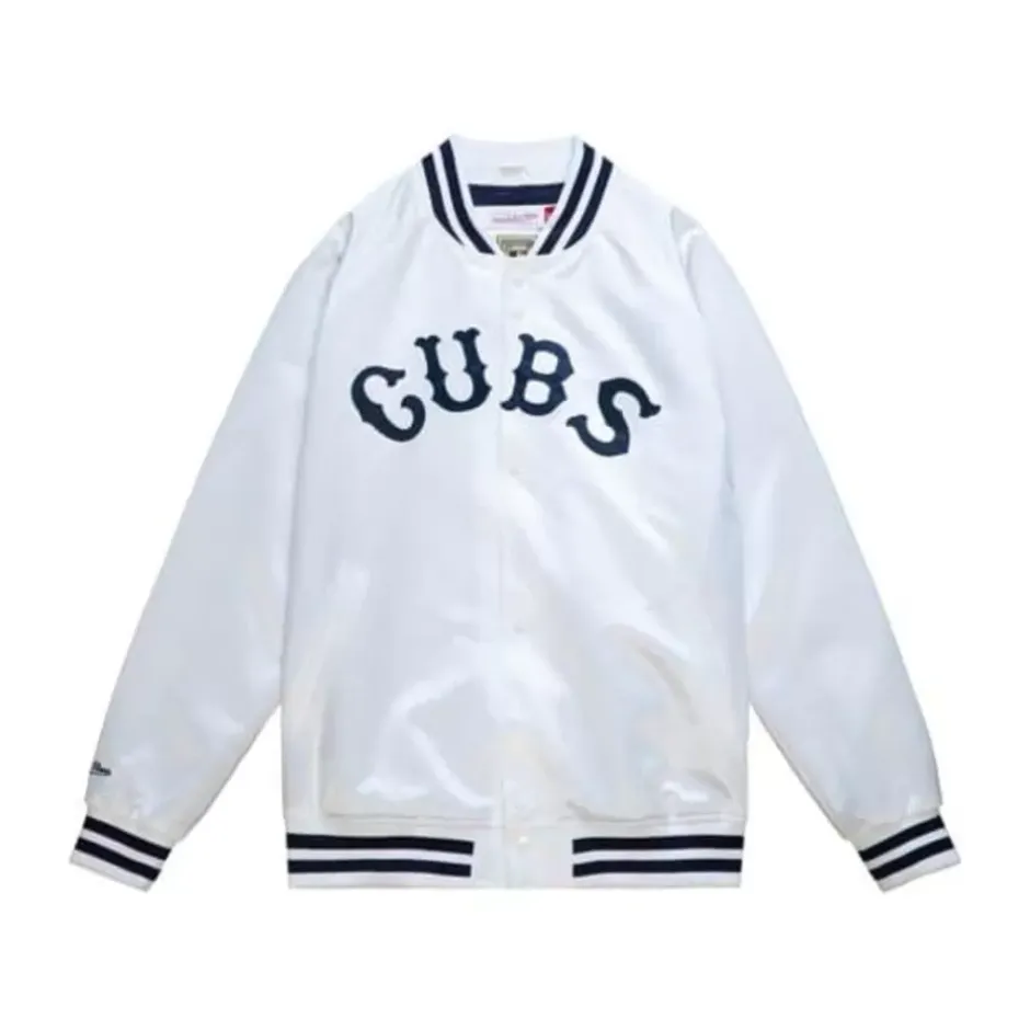 Men Mitchell & Ness Jackets & Outerwear-Lightweight Satin Jacket Chicago Cubs