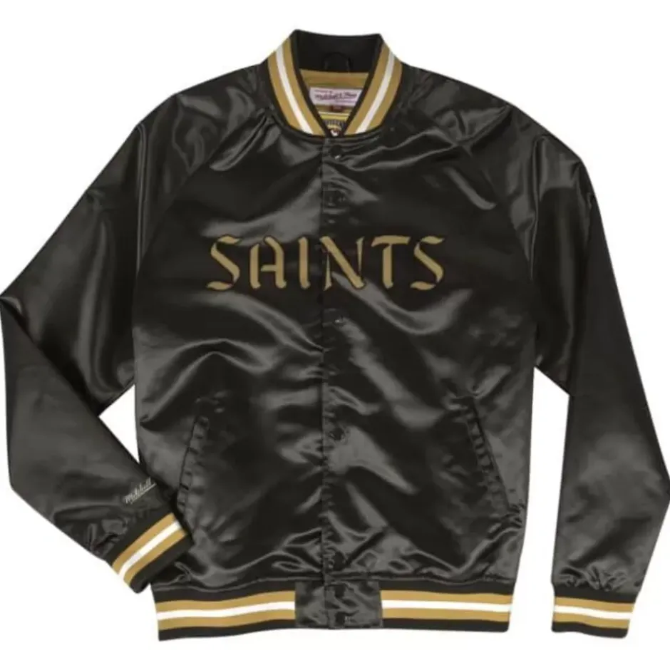 Men Mitchell & Ness Jackets & Outerwear-Lightweight Satin Jacket New Orleans Saints