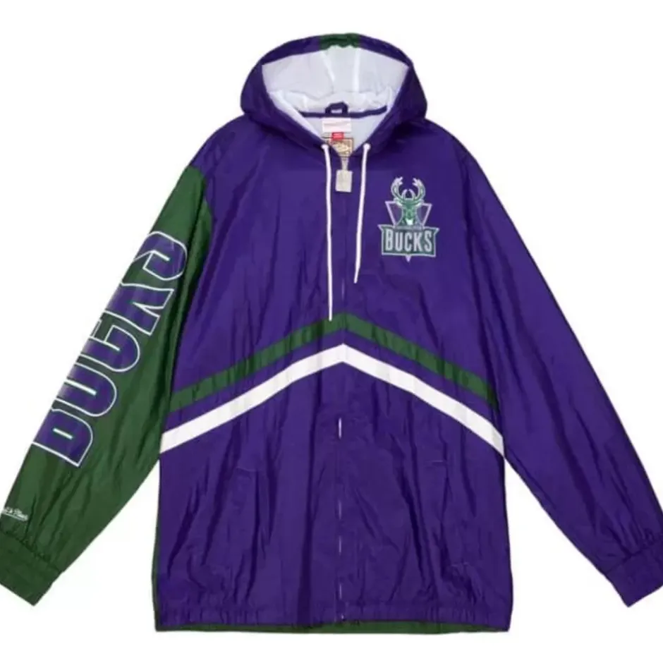 Men Mitchell & Ness Jackets & Outerwear-Undeniable Full Zip Windbreaker Milwaukee Bucks