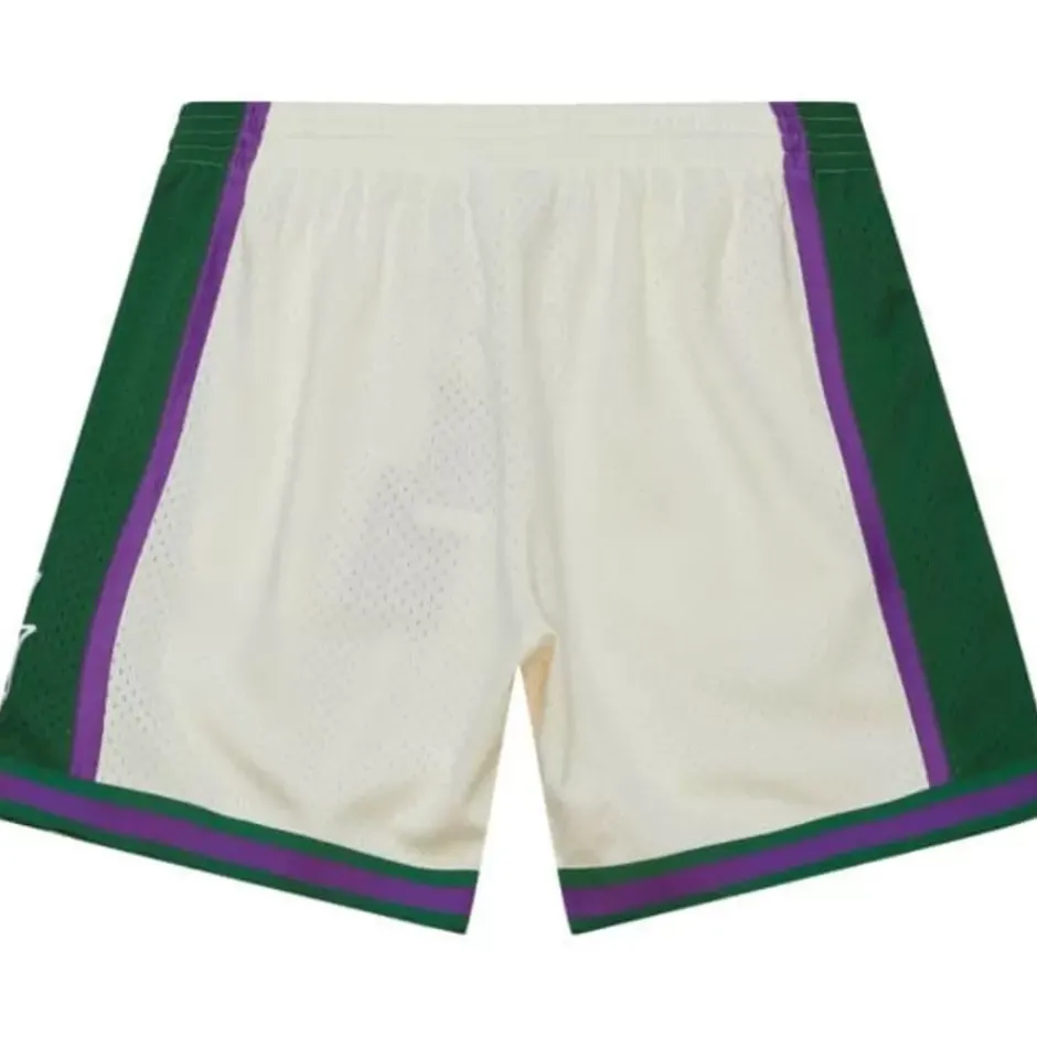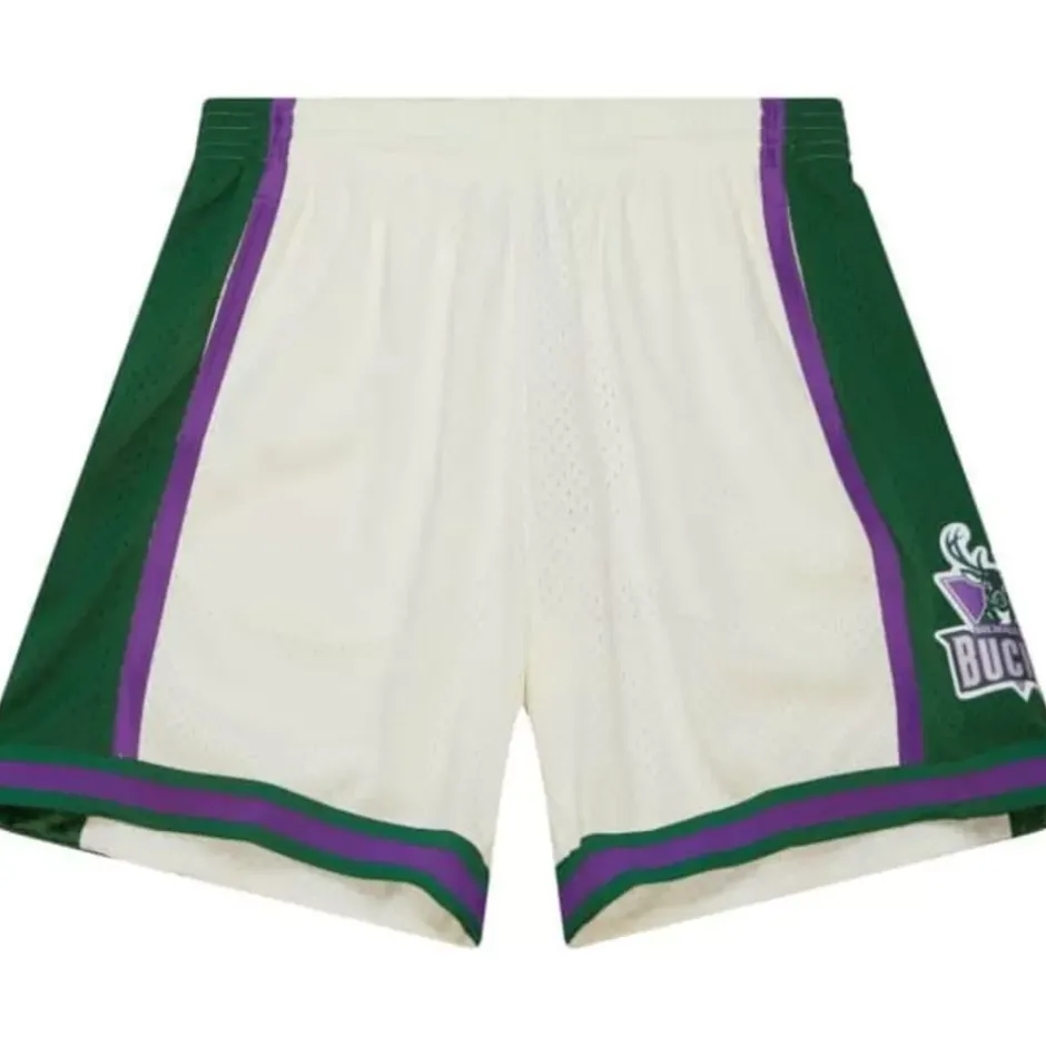 Men Mitchell & Ness Shorts-Cream Swingman Shorts Milwaukee Bucks 2000
