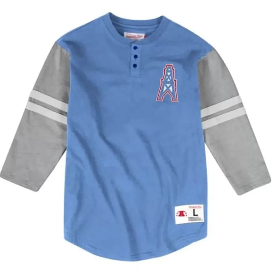 Men Mitchell & Ness T-Shirts & Tops-3/4 Sleeve Henley Houston Oilers