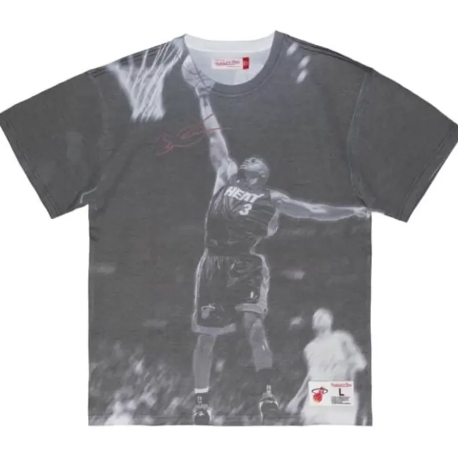 Men Mitchell & Ness T-Shirts & Tops-Above The Rim Sublimated Ss Tee Miami Heat Dwyane Wade