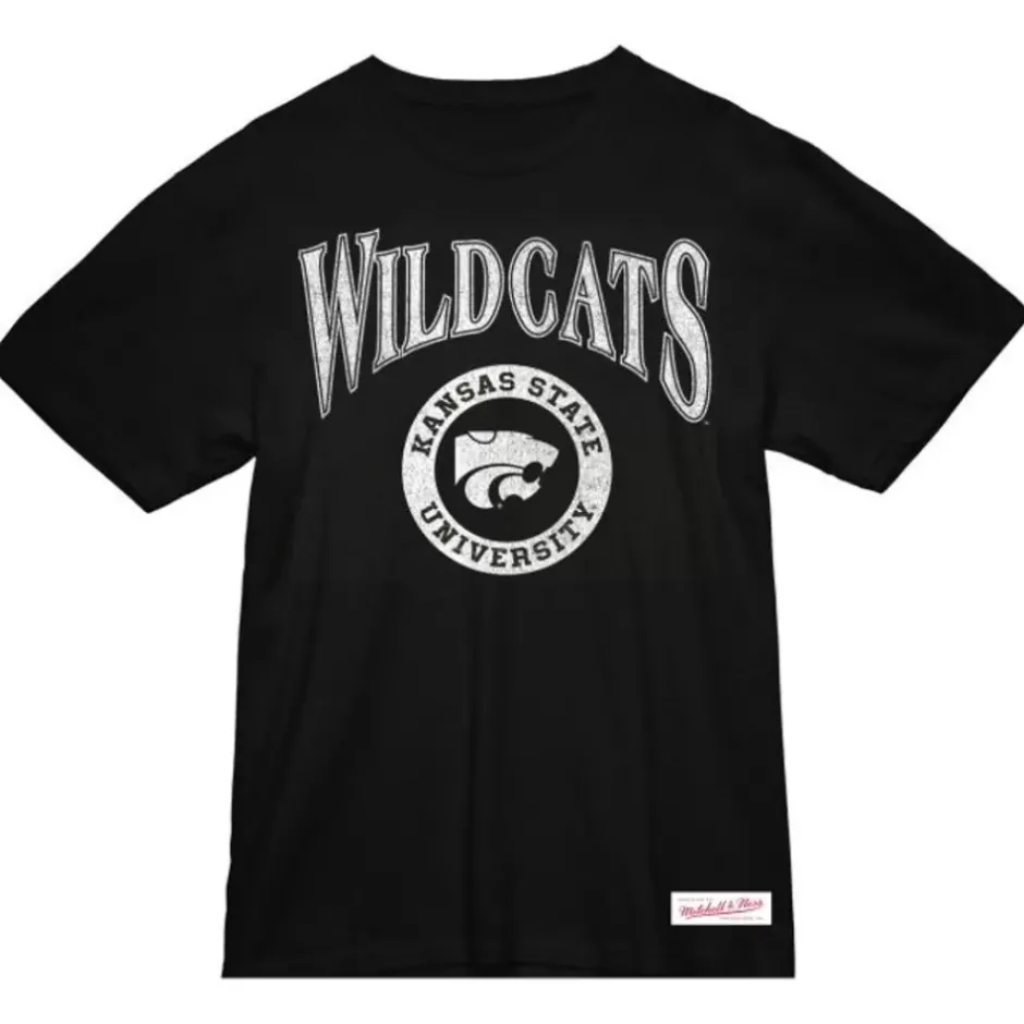 Men Mitchell & Ness T-Shirts & Tops-Arched Logo Lockup Slub Tee Kansas State University