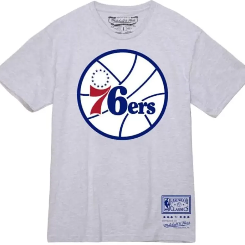 Men Mitchell & Ness T-Shirts & Tops-Basic Logo 2 Tee Philadelphia 76Ers
