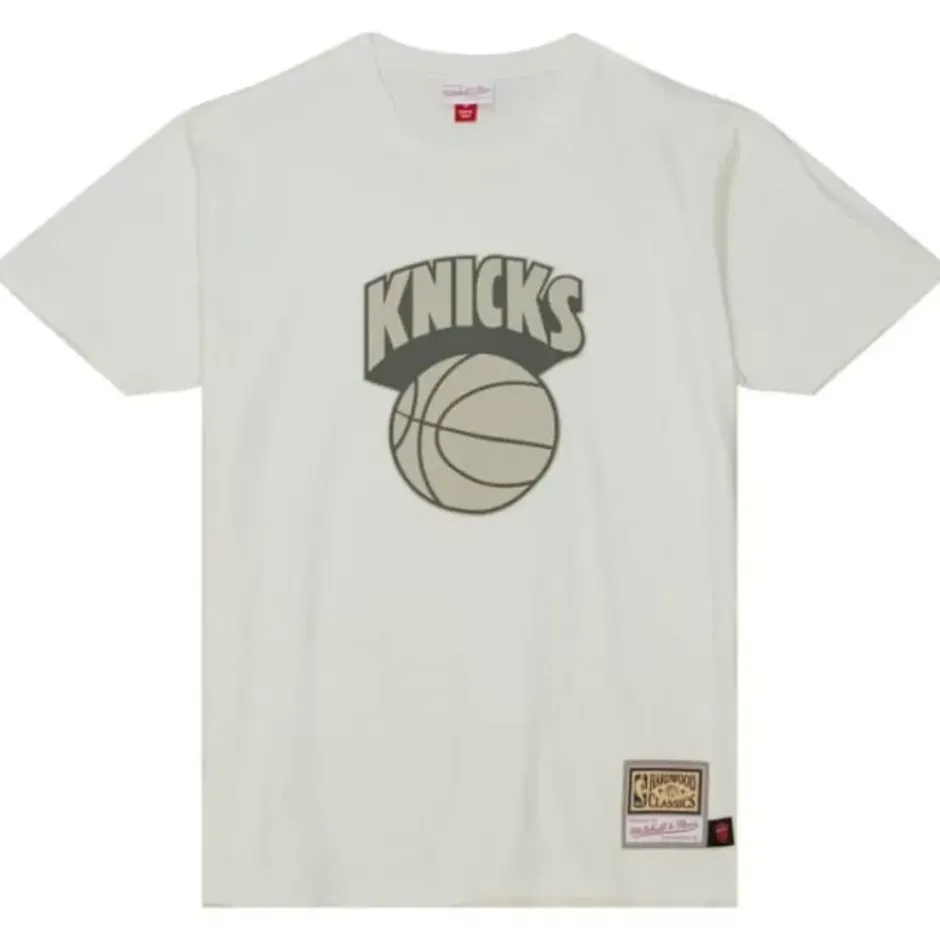 Men Mitchell & Ness T-Shirts & Tops-Cream Ss Tee New York Knicks