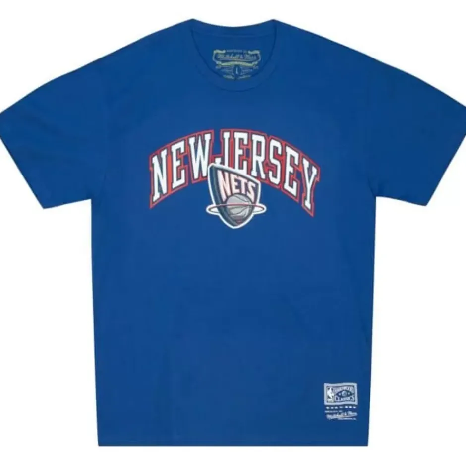 Men Mitchell & Ness T-Shirts & Tops-Cream Tee New Jersey Nets