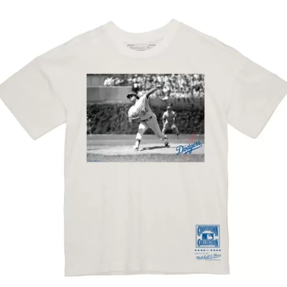 Men Mitchell & Ness T-Shirts & Tops-Fernando V. Bw Photo Tee Los Angeles Dodgers Fernando Valenzuela