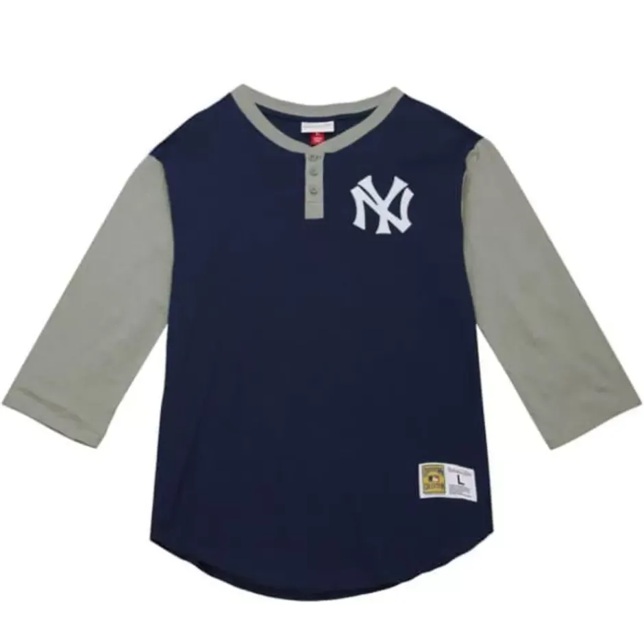 Men Mitchell & Ness T-Shirts & Tops-Legendary Slub Henley New York Yankees