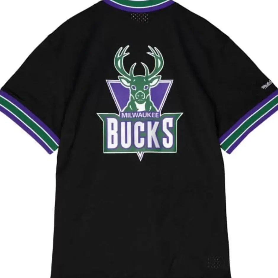 Men Mitchell & Ness T-Shirts & Tops-Mesh 1/4 Zip Milwaukee Bucks