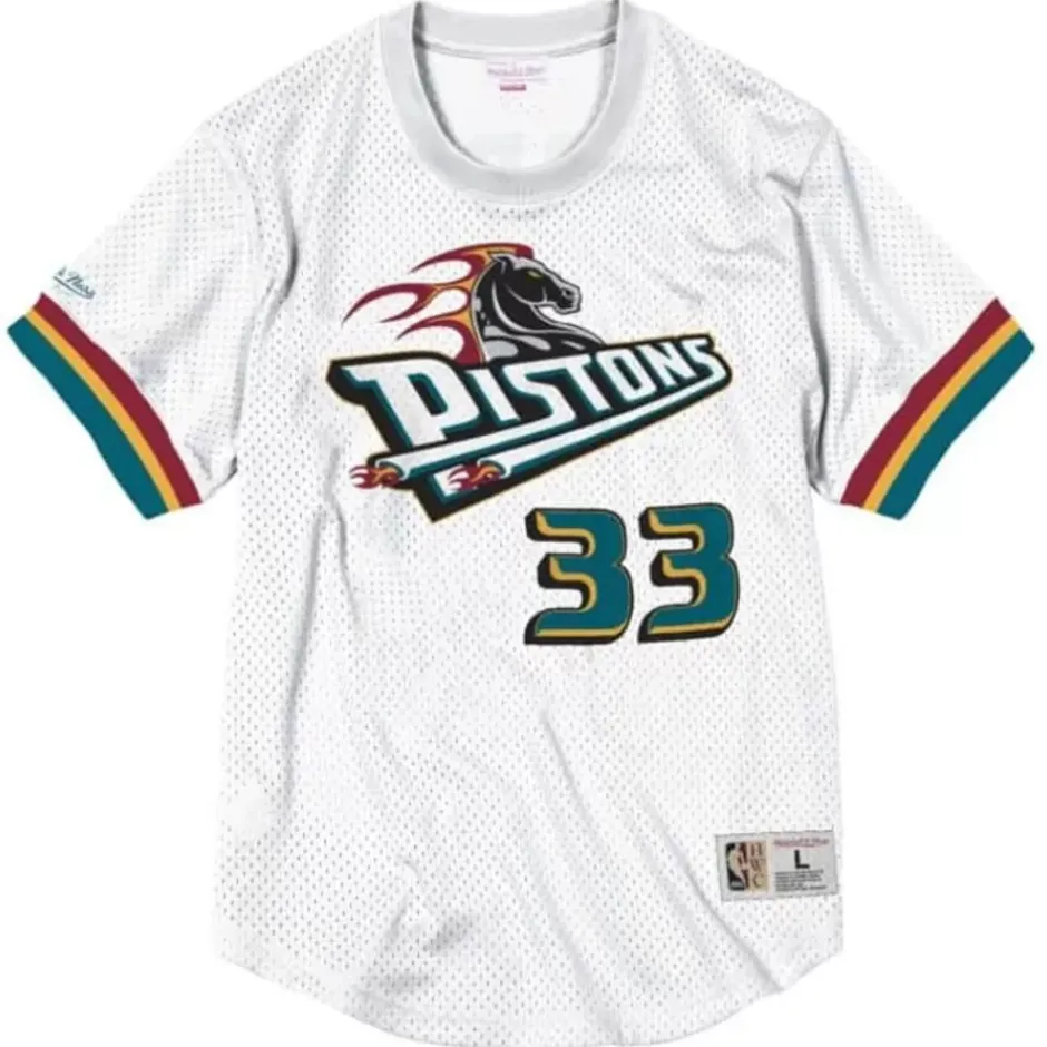 Men Mitchell & Ness T-Shirts & Tops-Name And Number Mesh Top Detroit Pistons 1998-99 Grant Hill