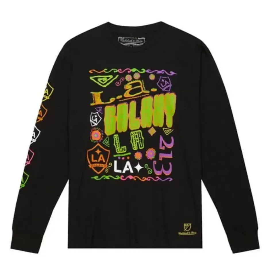 Men Mitchell & Ness T-Shirts & Tops-Papel Picado Ls Tee Los Angeles Galaxy