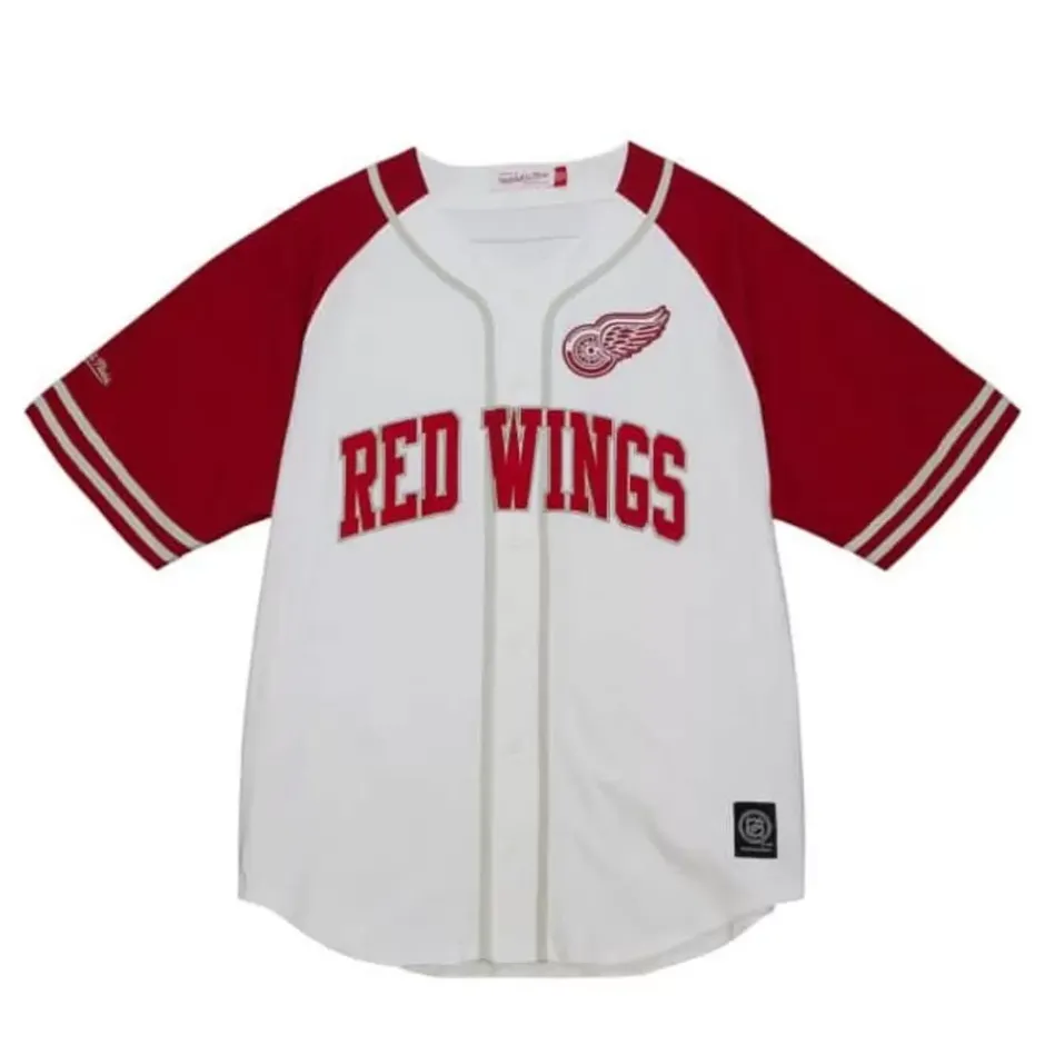 Men Mitchell & Ness T-Shirts & Tops-Practice Day Button Front Jersey Detroit Red Wings
