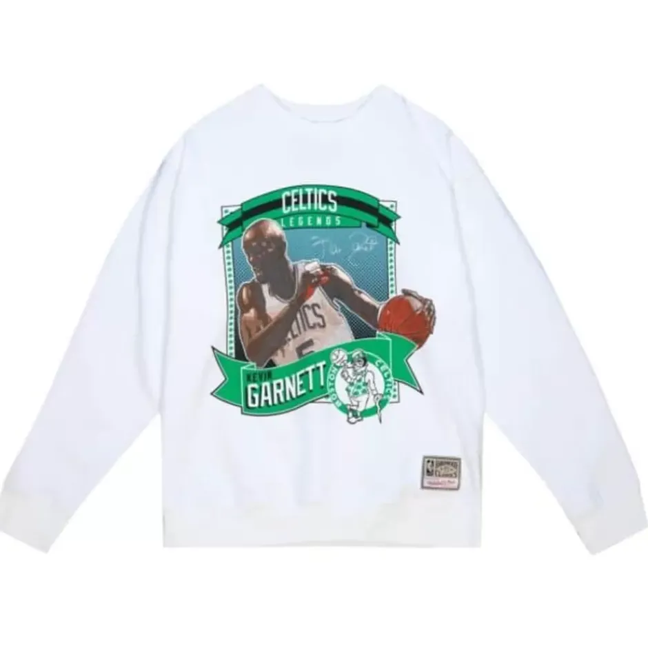 Men Mitchell & Ness T-Shirts & Tops-Retro Card Crew Longsleeve Boston Celtics Kevin Garnett