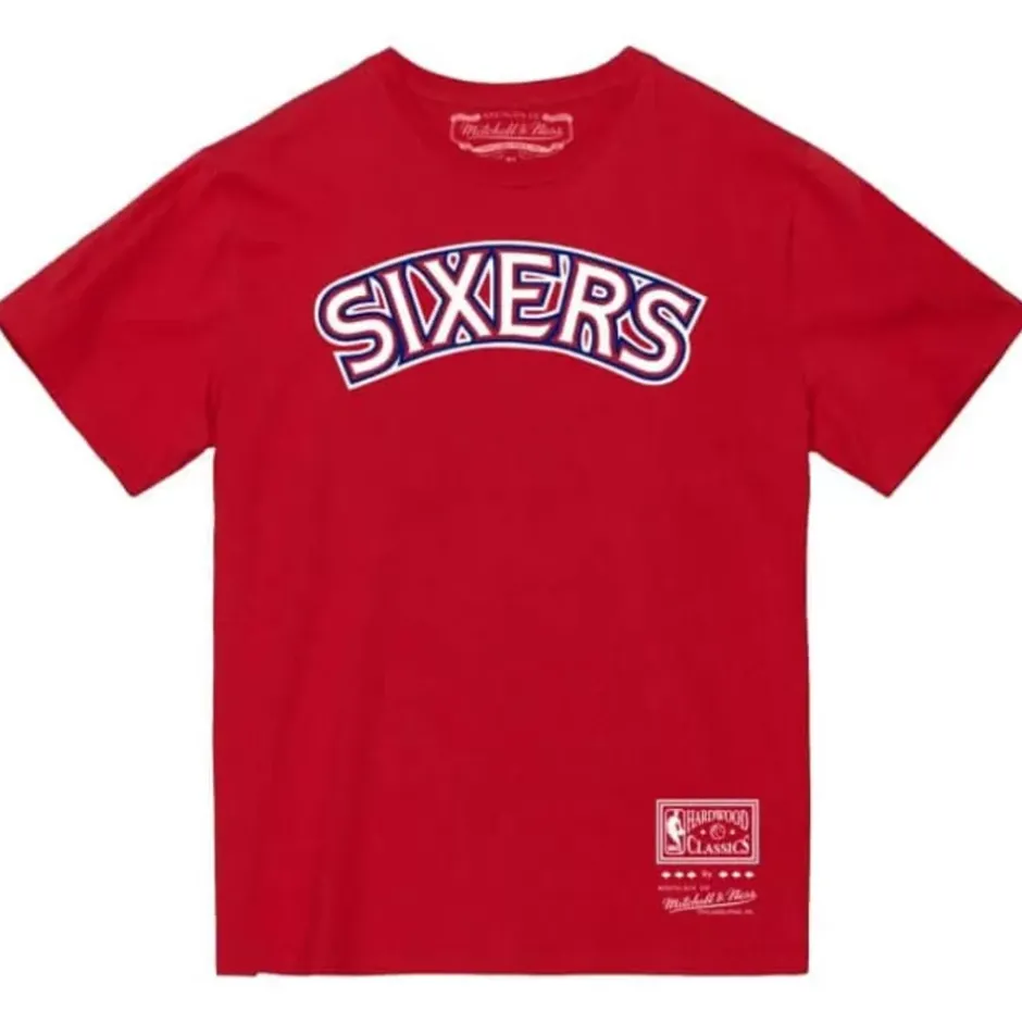 Men Mitchell & Ness T-Shirts & Tops-Team Wordmark 2 Tee Philadelphia 76Ers