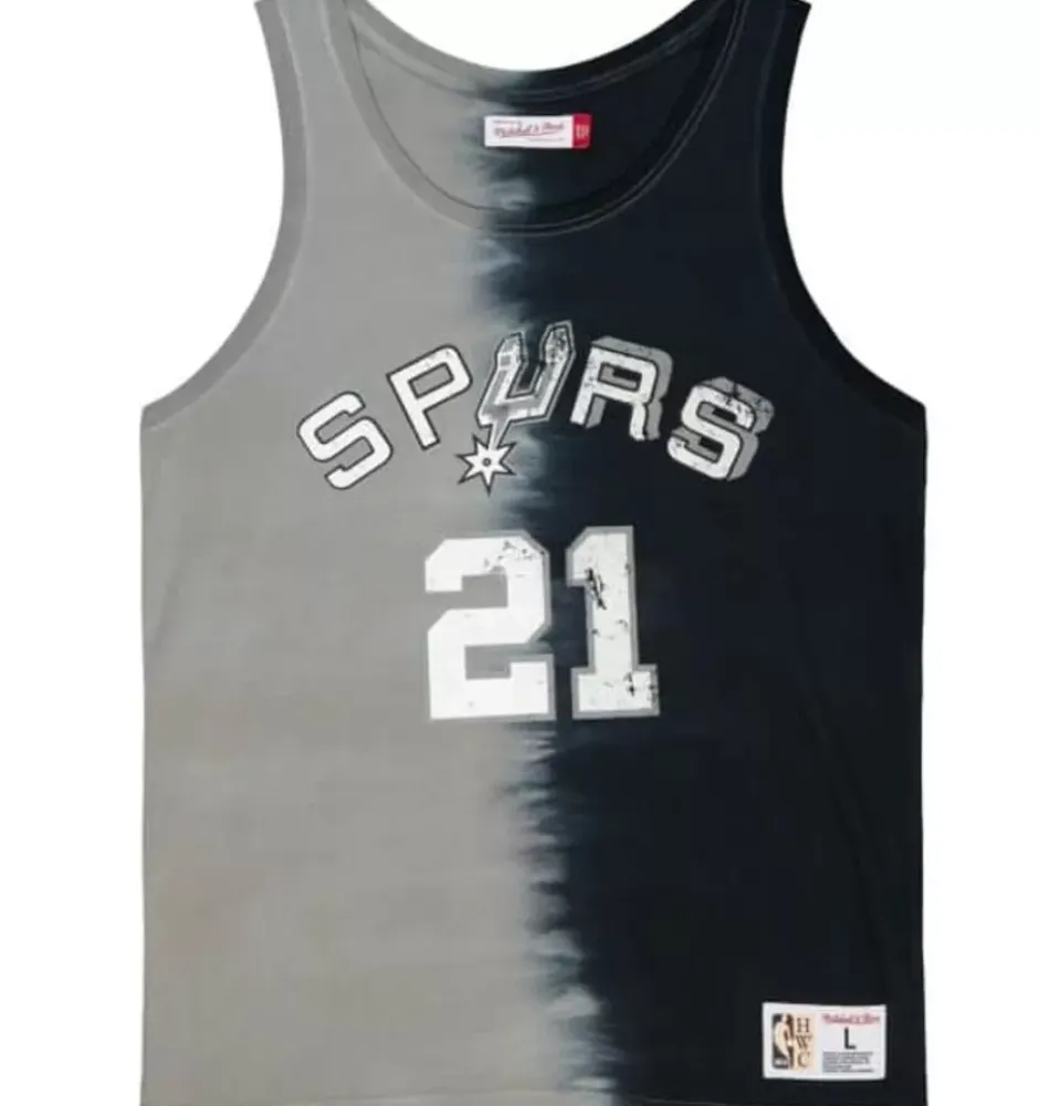 Men Mitchell & Ness T-Shirts & Tops-Tie Dye Cotton N&N Tank San Antonio Spurs Tim Duncan