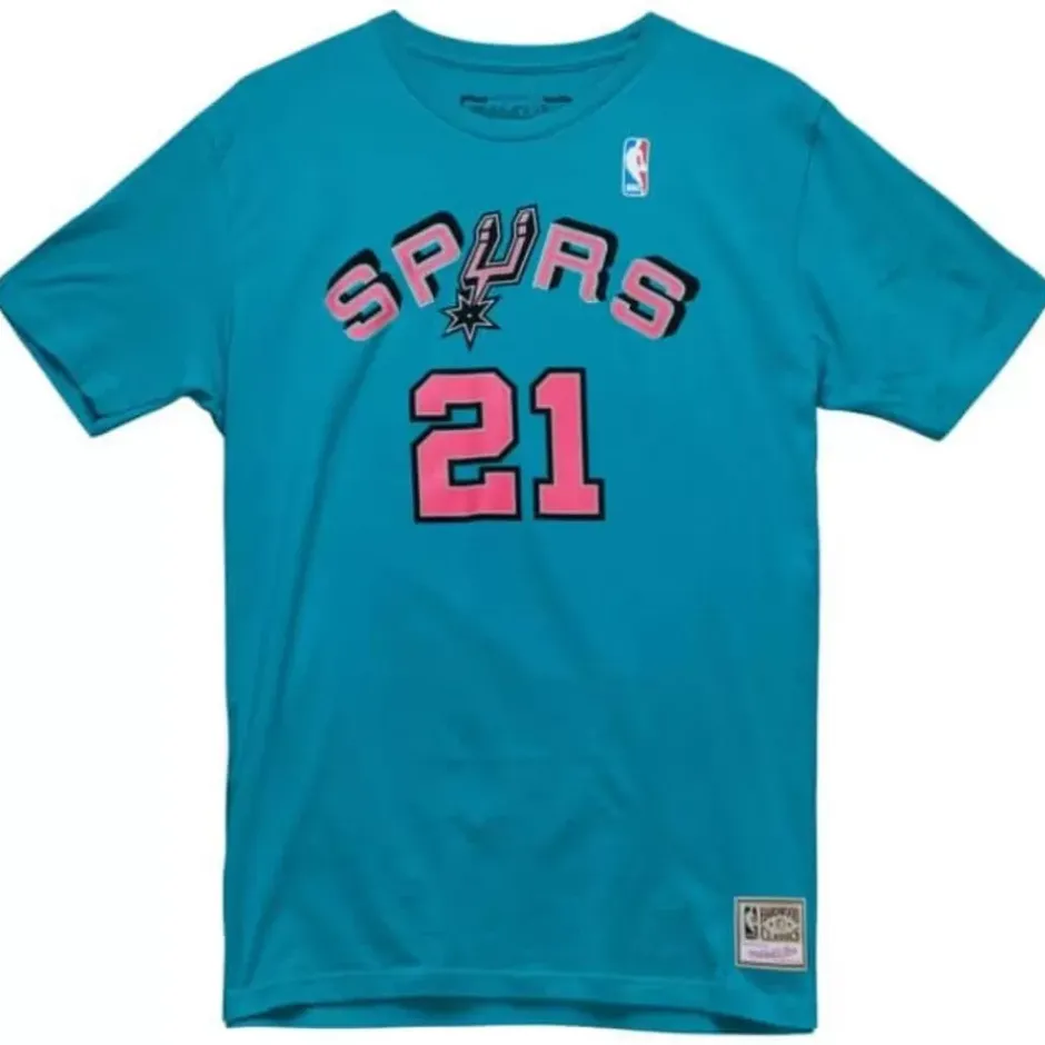 Men Mitchell & Ness T-Shirts & Tops-Traditional Name & Number Tee San Antonio Spurs 2014-15 Tim Duncan