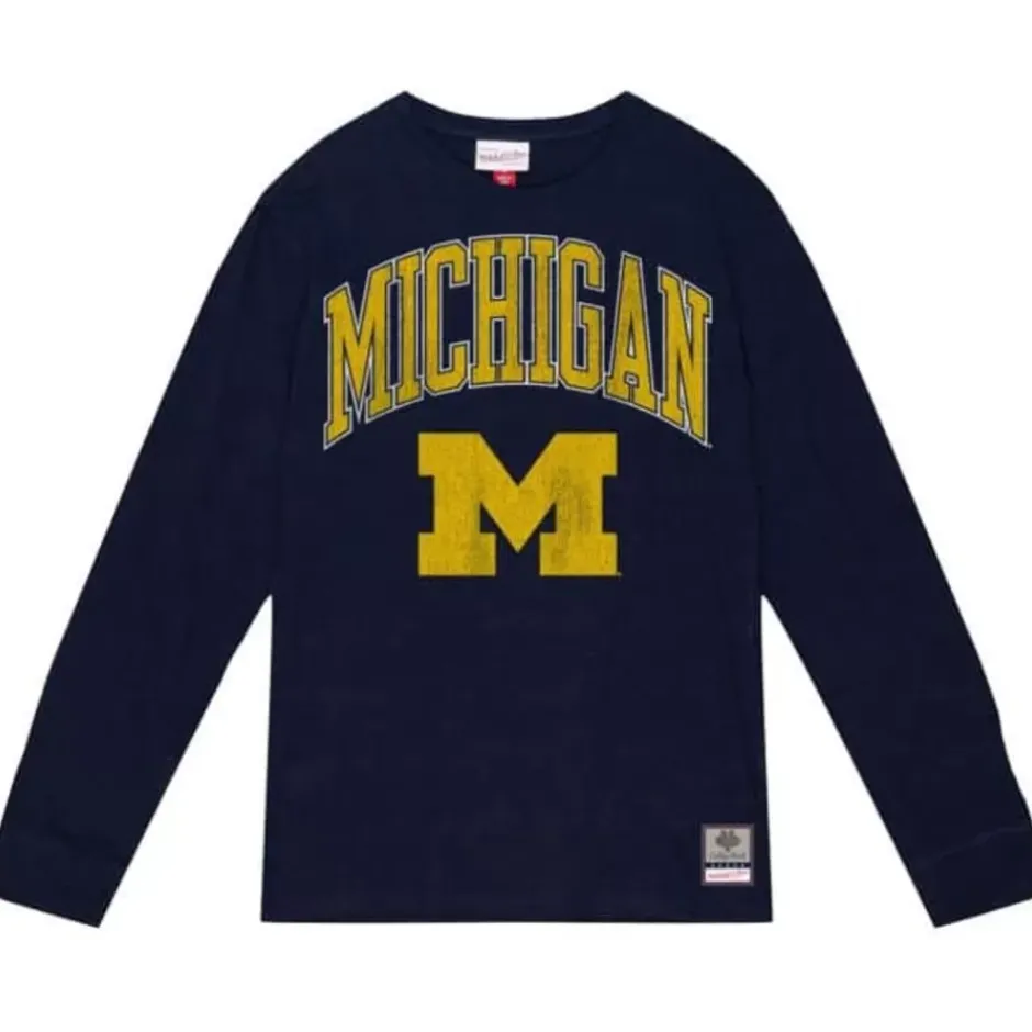 Men Mitchell & Ness T-Shirts & Tops-University Arch Logo Ls Tee University Of Michigan